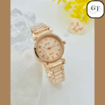 - Sparkling Bezel: The round dial is beautifully framed by a stone-studded bezel, adding a touch of glamour and catching the light with every movement.