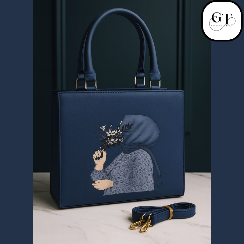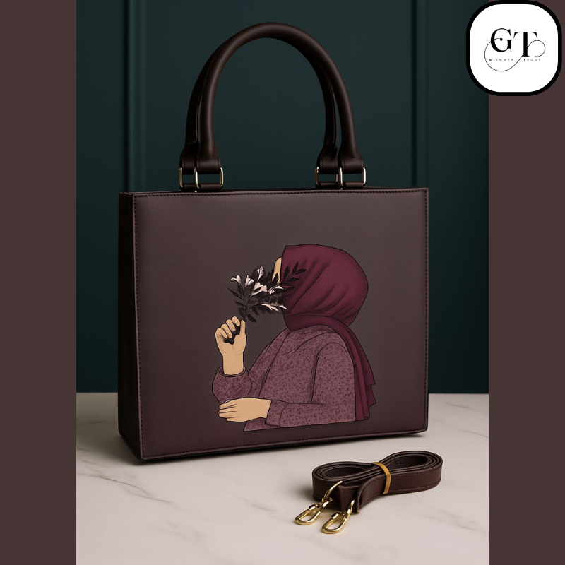 Elevate your accessory game with the “Modest Bloom” Satchel, the most demanding bag among modern fashionistas and a true expression of cultural elegance. Featuring a stunning, artistic illustration of a Hijab girl holding a delicate bouquet of flowers, this handbag is more than an accessory—it’s wearable art.