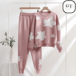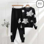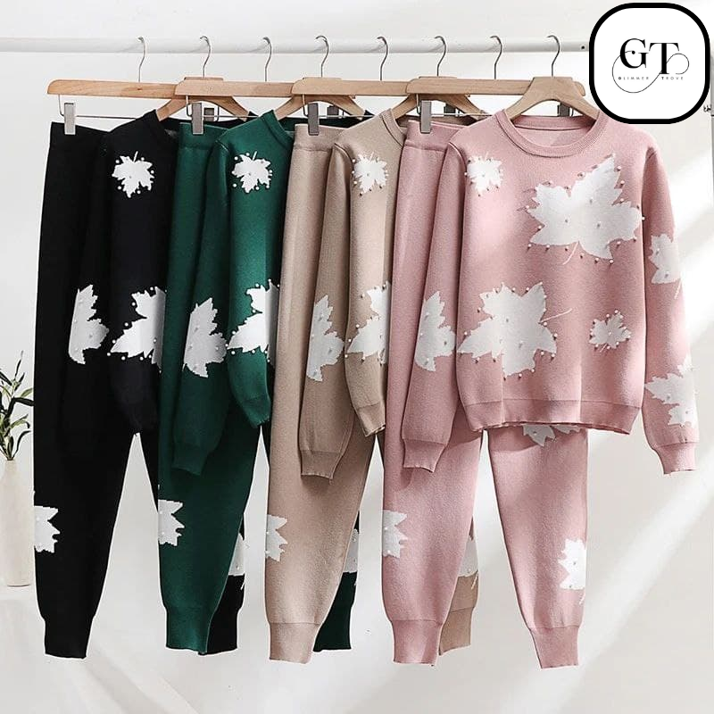 Stay cozy and chic all season long with this stylish 2-Piece Winter Tracksuit, featuring a playful leaf print and subtle pearl-style embellishments (Leaf Printed Pearls Work Style).
