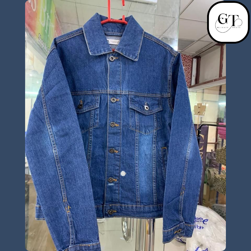 - Style: Traditional button-up denim jacket featuring a pointed collar, two flap chest pockets, and two side pockets (standard design, as seen).