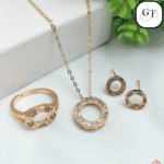 Elevate your look with this stunning Indian Zircon Gold-Plated Combo Set, featuring a contemporary circular design that blends traditional elegance with modern style. This set is perfect for sophisticated daily wear or dressing up for special events.